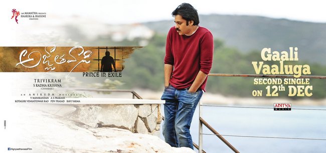 Pawan Kalyan starrer 'Agnyaathavaasi' has created a good stir. The shooting of the film is complete. Now the team has announced that the second single of the film, 'Gaali Valuga' will be released on December 12.